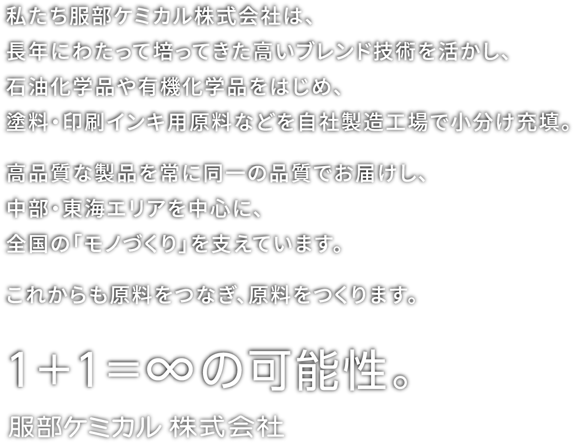 服部ケミカル株式会社は、1935年(昭和10年)に名古屋市鶴舞に服部商店として創業。